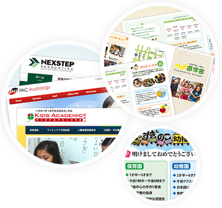 ビジネスに欠かせないウェブサイト。身近なところで目にする機会の多いパンフレットや新聞・雑誌の広告デザイン。これらは、会社やお店のイメージをユーザーに伝えることができる効果的な販促ツールです。グラフィックとWebの両方のデザインを手がけられるデザインタイムなら、複数のメディアを連動させて企業のブランディング効果を高めていける提案が可能です。